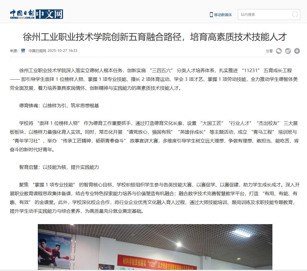 【中国日报】华体会官方版网站登录入口创新五育融合路径,培育高素质...
