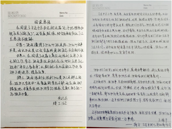 为引导同学们更好地学思践悟习近平总书记青年时期的成长故事,学习习近平的理想追求、家国情怀、进取精神、良好作风和优秀品质,院团总支号召同学们认真学习《习近平的七年知青岁月》,同学们在书中找到一段让自己内心深有感触的文字,亲手誊写,并通过学习分享会交流学习的认识和体会,共同探寻习近平总书记作为党的领袖的成长足迹和非凡历程,从而以奋发向上、团结一心的精神状态迎接党的十九大胜利召开。