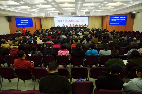 4月4日下午,学院党委在图书馆报告厅召开了2018年全校党风廉政建设工作大会。院领导祝木伟、张登宏、李红、鲍桂楠、张芳儒、徐勇出席会议,党委副书记李红主持会议。党委委员、纪委委员、全体中层干部、党支部书记、市级以上项目负责人、二级学院管理人员、关键部门和岗位的全体管理人员近200人参加会议。