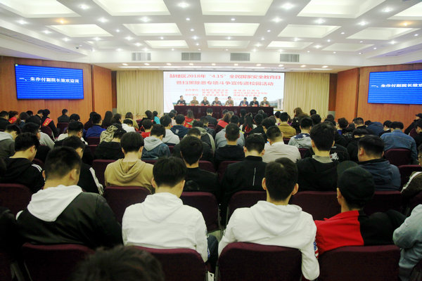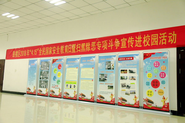为全面贯彻落实党的十九大精神和习近平总书记总体国家安全观战略思想,深入学习宣传《中华人民共和国国家安全法》,根据省市有关工作部署和安排,4月13日上午,我校联合鼓楼区政法委、国安办、扫黑办等部门在图书馆多功能厅组织开展“全民国家安全教育日暨扫黑除恶专项斗争宣传进校园”主题教育活动。徐州市国家安全局、鼓楼区委政法委,九里街道办事处、九里派出所及我校相关领导出席活动。鼓楼区各街道办事处人员,九里派出所民警代表,我校老师代表、学生代表、保安人员等300多人参加了本次活动。。