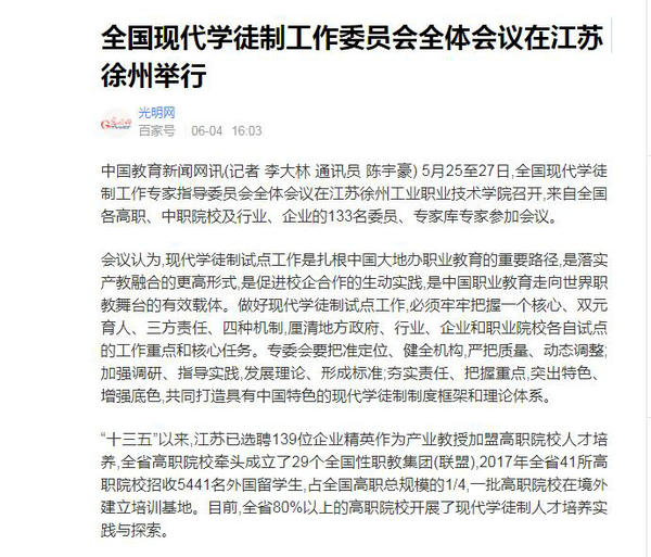 5月25至27日,全国现代学徒制工作专家指导委员会全体会议在江苏华体会官方版网站登录入口召开,来自全国各高职、中职院校及行业、企业的133名委员、专家库专家参加会议。