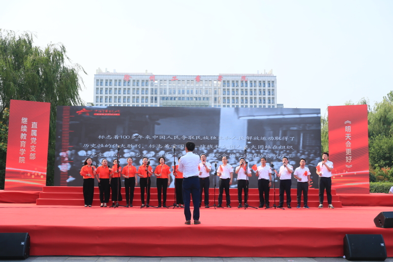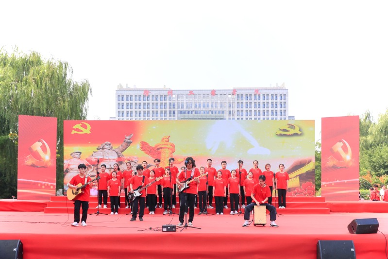 6月30日下午,我校在图书馆前广场隆重举行“永远跟党走”庆祝中国共产党成立100周年歌咏比赛。全体校领导、党委委员、全校在校教职工、部分学生代表参与本次活动。