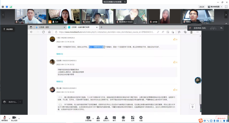 为积极贯彻落实学校关于疫情防控相关部署要求,使疫情防控常态化形势下的学生思想引领工作走深走实,充分发挥基层团支部的战斗堡垒作用,引导学生在校园封闭管理期间充实校园生活,4月13日,校团委组织在校团支部开展“疫情之下再谈学习”线上主题团课。
