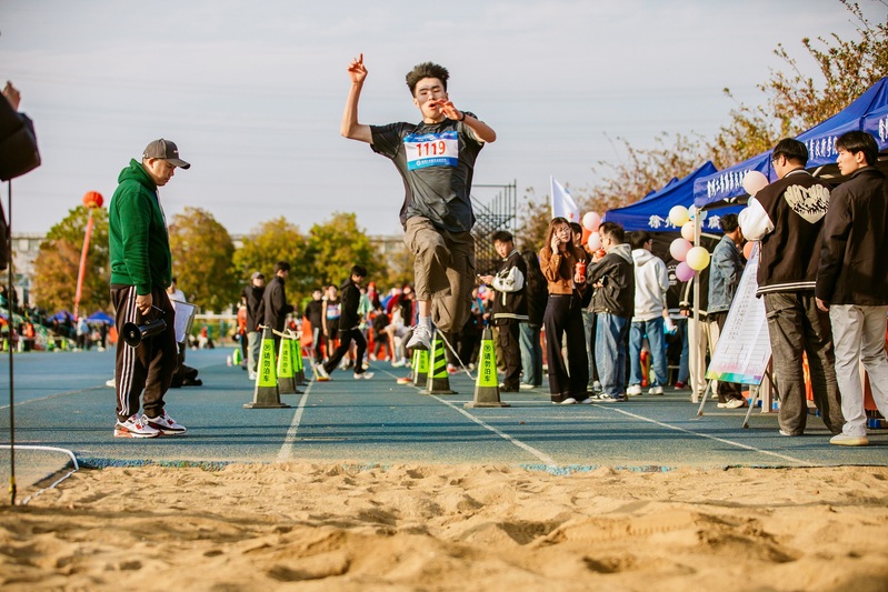 跳远场地,成为了学生们展现飞翔梦想的舞台。他们如同展翅高飞的雄鹰,在空中划出一道道流畅而优美的弧线,每一次腾空跃起,都是对自我极限的勇敢挑战。当他们轻盈落地,脚下的沙坑留下深深的印记,那一刻,观众的惊叹与热烈掌声如潮水般响起,仿佛在为这瞬间的辉煌加冕。每一次落地,不仅是距离的征服,更是对勇气与梦想的最好诠释,学生们在这片沙坑上,用汗水与努力,绘制出了一幅幅青春飞扬的绚丽画卷。