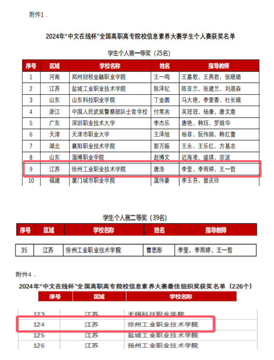 近日,“中文在线杯”全国高职高专信息素养大赛在激烈角逐中落下帷幕。我校学生唐浩、曹思彤同学分别获得国赛一等奖与二等奖,吴雅丽、李莹老师分别荣获教师微课赛三等奖、优秀奖,李莹、李雨婷、王一哲三位老师被授予“优秀指导教师”的称号,我校荣获“最佳组织奖”。