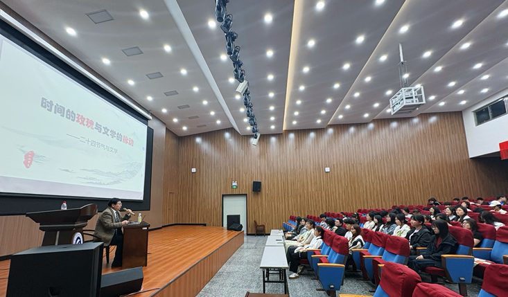 为全面提升我校学生的审美素养和文化底蕴,引导青年学子以美为志、以美养德,4月9日晚,江苏师范大学教授、硕士生导师、江苏省高校“青蓝工程”中青年学术带头人田崇雪,为我校160名学生举办了题为“时间的玫瑰与文学的脉动:二十四节气与文学”的精彩讲座。本次活动由体艺部通过江苏省美育大讲堂平台申报,经教育厅批准成功举办的活动,活动当天,校团委通过PU平台发起活动申请,得到了学生的积极响应。