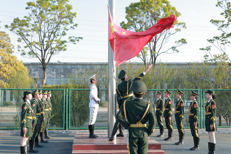 上午七时,全体师生整齐列队,升旗仪式正式开始。国旗护卫队迈着铿锵有力的步伐护送国旗入场。伴随着激昂的《义勇军进行曲》,五星红旗冉冉升起,全体师生肃立注目,表达对祖国的崇高敬意。