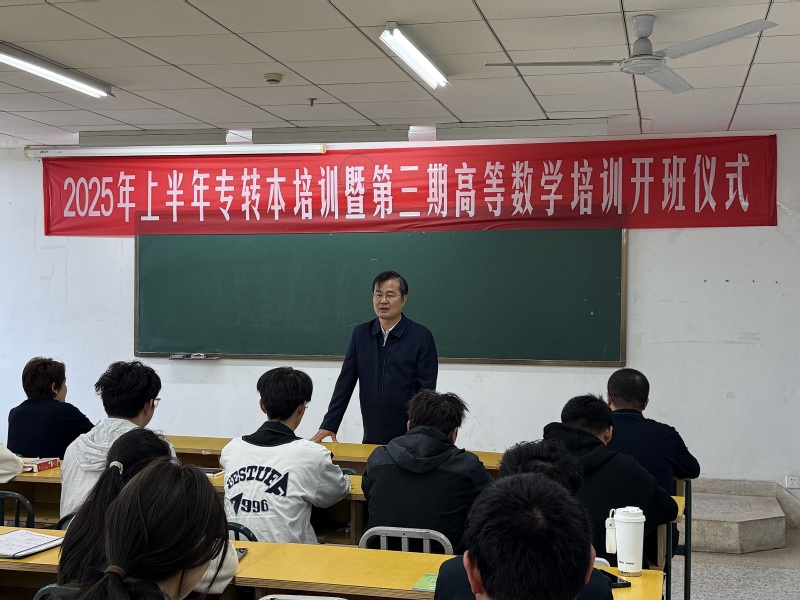 为深化分类培养改革,助力学生个性化成才,4月19日上午,我校在B18-206举行了“2025年上半年专转本培训暨第三期高等数学培训开班仪式”。副校长张芳儒和教务部副部长苗坤出席开班仪式。仪式由基础部副部长曹可主持。