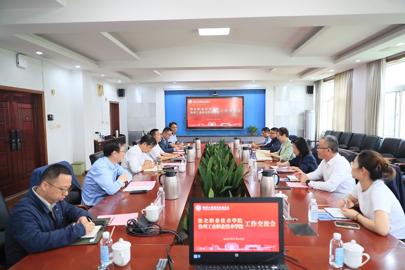 9月24日,淮北职业技术学院党委副书记、校长张亚率队来校,就专业建设、师资队伍建设、实训基地建设等开展工作交流,我校党委副书记、校长鲍桂楠,副校长张芳儒及相关职能部门负责人参加活动。