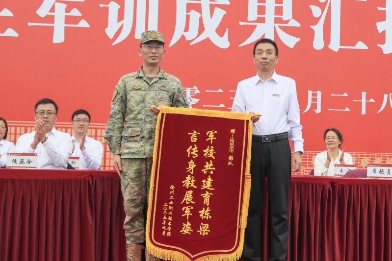 孙健身在总结讲话中对2025级新生军训成果给予高度评价。他代表学校向全体教官的辛勤付出表示衷心感谢,向参与军训工作的老师们致以诚挚问候。他指出,军训是大学生涯的重要一课,是磨炼意志、塑造品格的有效途径。通过军训的洗礼,同学们不仅掌握了基本的军事技能,更培养了吃苦耐劳、团结协作的精神,为即将开始的大学生活奠定了坚实基础。同时,他对同学们提出殷切希望:希望同学们在新起点上永葆军训锤炼出的优良作风与坚毅品格,并将其贯穿于未来的学习与人生征程;要立足起点,秉承“求真、求实、求精、求新”的校训,深刻领悟“德技并重”的内涵,修炼成内外兼修、知行合一的优秀人才;同时,更要把握时代机遇,大力弘扬执着专注、精益求精的工匠精神,努力以卓越技能成就自我、报效祖国。