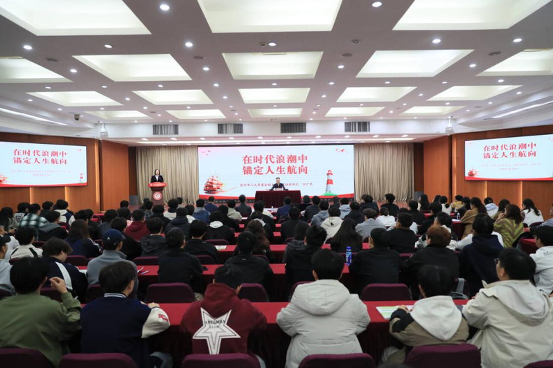 为深入贯彻落实党的二十届四中全会精神和习近平总书记关于加强高校思政课建设的重要指示精神,11月4日,市人大常委会副主任、党组副书记、一级巡视员刘广民应邀来校,为师生讲授题为《在时代浪潮中锚定人生航向》的思政课。活动由党委书记刘莹主持,党委副书记李红作总结讲话。徐州市人大常委会副秘书长戴立红、马克思主义学院院长王博、党总支书记陈竹、副院长谢玉龙及150余名师生代表现场聆听。
