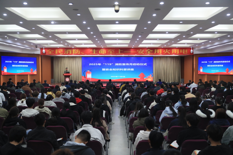 为进一步增强全校师生消防安全意识,宣传消防法规,普及消防安全知识,11月5日下午,我校在图书馆报告厅举行2025年“119”消防宣传月活动启动仪式暨安全知识科普活动。副校长孙健身、党委委员、教务部部长侯亚合、鼓楼区消防大队参谋周业楼、孟家沟消防救援站副站长郭怀鹏、教官杜明磊出席启动仪式。我校各消防重点单位负责人、实训中心主任、安全员、食堂及校内“九小场所”负责人、学生代表共同参加。仪式由保卫处副处长魏宇川主持。