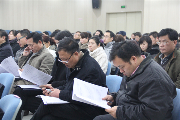随后,财务处处长罗军作《2013年学校教育教学专项经费的使用情况》、《2014年学校财务经费预算》及《2013年工会经费使用情况》报告;提案工作委员会主任叶明生作二届四次教代会提案工作报告;人事处处长吴红作《学校绩效工资实施办法》报告。七个代表团分别就以上报告进行了热烈而充分的讨论。
