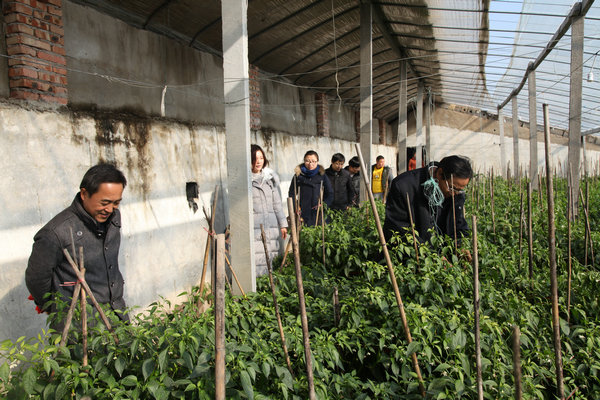 6日下午,支部党员来到跃进村股田制合作社,参观了蔬菜大棚和农业机械。作为远近闻名的蔬菜专业村,跃进村蔬菜受客户青睐,合作社负责人陈孝坤说,每天清晨5点,跃进村交易市场就是人声鼎沸,车水马龙。目前,全村4500多人,耕地面积5000亩,仅蔬菜面积就有2800多亩。全村发展各类蔬菜大棚2000余个,人均纯收入近万元。在跃进村的带动下,周围的新庄、位河、高庄等村加入蔬菜种植行列,蔬菜种植面积发展到1.4万亩,年产各类蔬菜20万吨。