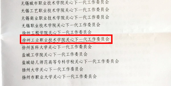 我校党委及行政积极支持关工委工作,为关工委配强了班子,配齐了人员,配足了经费,并经常指导关工委开展日常工作。关工委一班人不负众望,稳步促进关工委常态化建设,开展了一系列活动,取得了一系列成果;2017年,各二级关工委利用徐州市委组织的“大走访”活动,深入社区困难家庭,对口帮扶基层社区多名学习困难的学生等等,赢得了上级的表彰和奖励。