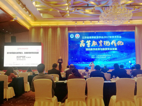 由江苏省高等教育学会主办、无锡太湖学院承办的2017年江苏省高等教育学会学术年会于11月30至12月2日在江苏无锡举行,省内外76所高校代表和高等教育领域的专家学者齐聚一堂,围绕“高等教育现代化:深化教学改革与教师专业发展”主题,开展交流研讨,激荡思想。中国高等教育学会会长杜玉波(原教育部副部长)、省教育厅厅长葛道凯、无锡市市长汪泉、省高教学会会长丁晓昌等出席了会议。党委书记祝木伟参加会议并在会上作主题发言。