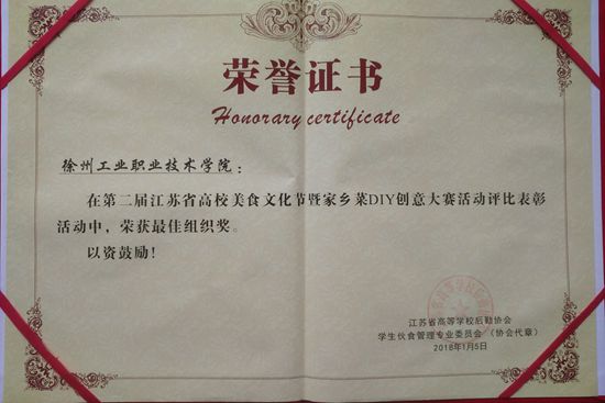 【荣誉】我校荣获江苏省第二届高校美食文化节活动优秀组织奖