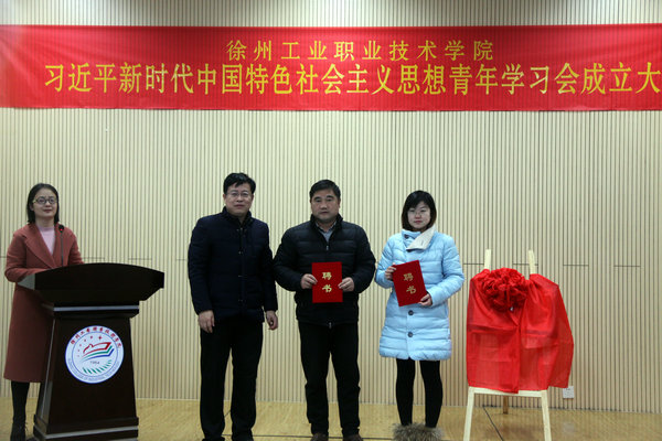 1月5日下午,我校习近平新时代中国特色社会主义思想青年学习会成立大会在教师发展中心报告厅举行。成立大会上,学院党委副书记李红为青年学习会授牌并讲话,党委宣传部部长乔向东为青年学习会指导教师刘新良、曾晓老师颁发聘书,团委、各二级学院团总支书记和全体青年学习会骨干成员参加了成立活动。