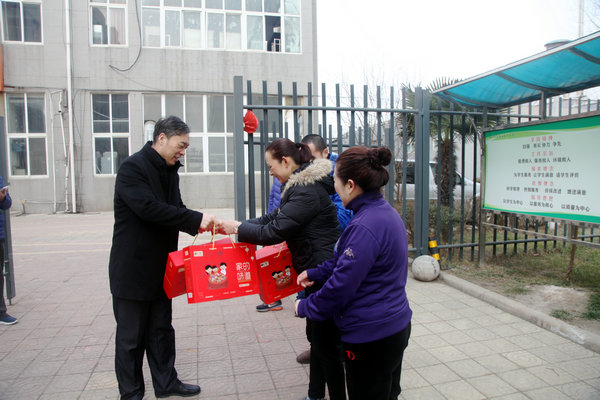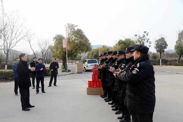 2月16日大年初一上午,党委书记祝木伟在副院长朱作付,以及党政办、保卫处、后勤管理服务中心等部门负责人的陪同下,亲切看望慰问了春节期间仍坚守工作岗位一线的员工,为他们送去慰问品,并通过他们向其他一线的教职员工致以新春的问候。