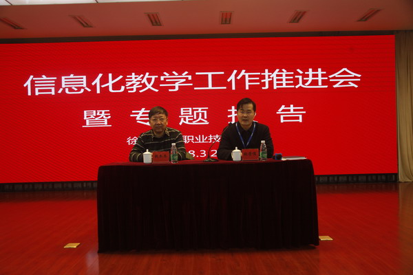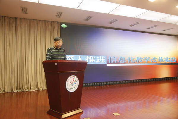 3月21日下午,我校在图书馆报告厅举办了“信息化教学工作推进会暨专题报告会”,特邀沙洲职业工学院钱东东教授主讲。各二级院部负责人及全体教师400余人听取了讲座。党委书记祝木伟、院长张登宏、副院长张芳儒出席报告会。
