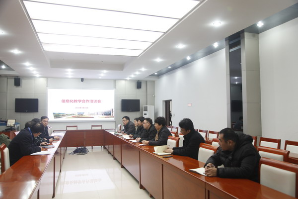 讲座结束后,我校在图书馆视频会议室召开了信息化教学合作洽谈会。