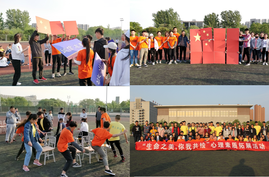 为进一步加强我校心理健康工作,提升学生身心素质、促进学生全面发展,由我校大学生心理健康教育与咨询中心主办、材料工程学院心理健康教育工作站承办的“乐活青春,从心开始”大型心理素质拓展活动于4月24日在田径场热烈开展。学工处大学生心理健康教育与咨询中心缪斯老师组织指导此次活动,来自六个学院的近百名同学积极参与到此次活动。