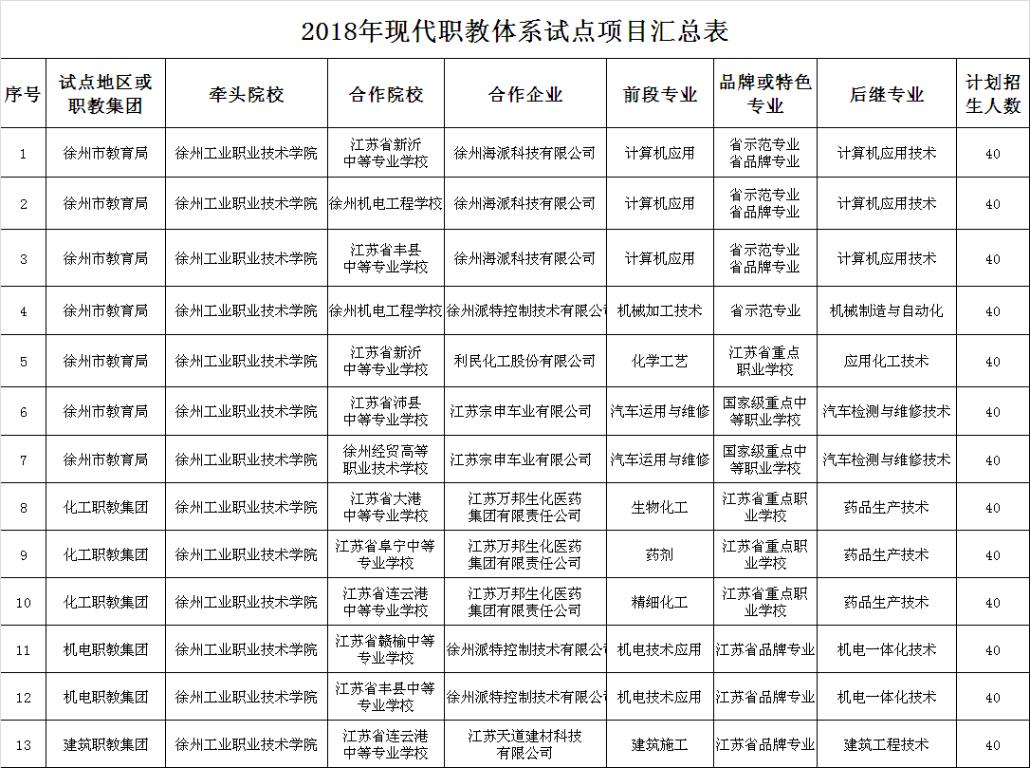 近日,从江苏省教育厅《省教育厅关于公布2018年江苏省现代职教体系建设试点项目的通知》(苏教职〔2018〕7号)文件获悉,我校2018年现代职教体系“3+3”试点项目共申报14项,获批13项,比2017年新增5项,取得历史性突破。另悉,在江苏省公布的2018 年普通本科与高职院校合作培养高素质技术技能人才项目中,我校与淮阴工学院联合申报的“药品生产技术专业”普通本科与高职院校分段培养“3+2”新增项目、与徐州工程学院联合申报的“高分子材料工程技术专业” 普通本科与高职院校分段培养“3+2”延续项目,全部获批。