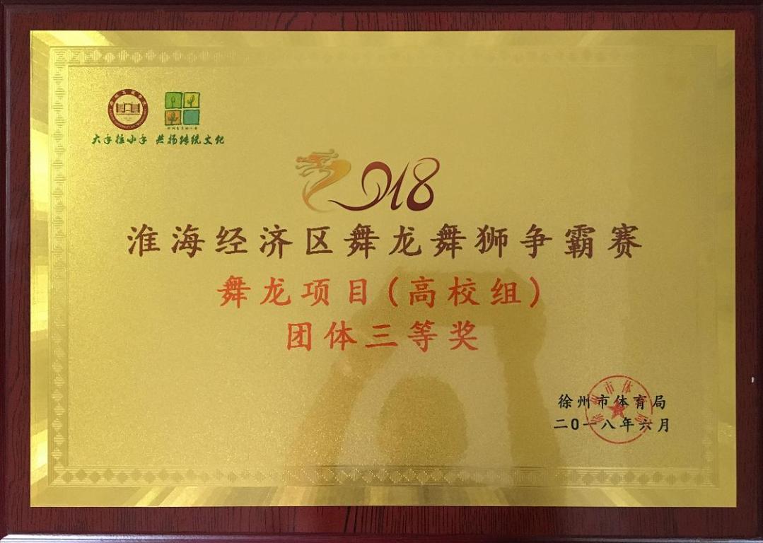 第一届淮海经济区舞龙舞狮争霸赛由徐州市体育局、徐州龙狮运动协会主办,旨在推动淮海经济区龙狮运动的发展,丰富人民群众业余文化生活,促进龙狮运动交流,推动龙狮运动发展,共同传承“自强、忠义、崇礼”的龙狮精神。通过比赛,队员开阔了视野,增长了坚实,建立了信心,为备战省运会打下了坚实的基础。