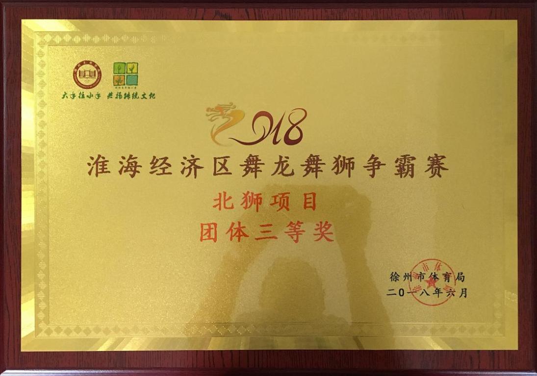 6月16日至18日,第一届淮海经济区舞龙舞狮争霸赛在徐州民主路小学绿地商务城分校开幕。来自江苏、山东、河南、安徽四个省的19只代表队,近200名运动员参赛,我校“尚武”龙狮队在比赛中获得北狮传统第一名、北狮竞速第三名、北狮自选第四名、舞龙规定第六名、舞龙自选第七名的好成绩。