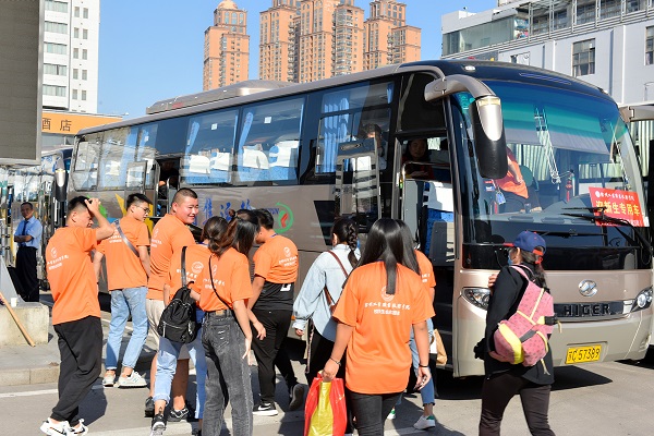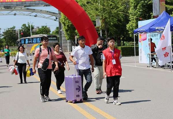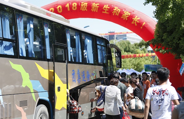学校在火车站、高铁站、汽车站等均设立新生接待点,9月8日早晨6点,志愿者们已经在迎新站点守候。班车从学校出发,迎接新生和家长,方便新生快速到达学校完成报到手续。