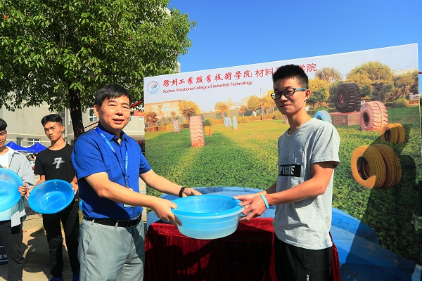 院长张登宏亲手把入学“见面礼”--两个“一辈子用不坏”的脸盆,送给新生。为新生上了“质量意识”第一课,并勉励他们勇于克服困难,奋发图强,以积极健康、乐观豁达的心态和追求高质量意识迎接即将开启的大学生活。