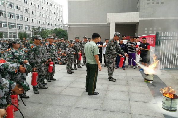 为提高我校新生的消防安全意识,增强应对和处置突发情况的能力,我校保卫处、武装部、学工处联合开展了一次消防进军训活动,通过举办消防讲座、疏散逃生、灭火演练、紧急救护等活动,使学生熟悉逃生路线、掌握疏散要领、了解紧急救护常识,从而在遇到火灾等突发事件的情况下最大限度地保护自身安全,减少损失,确保稳定。