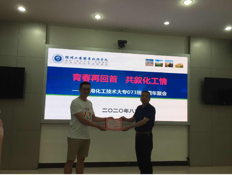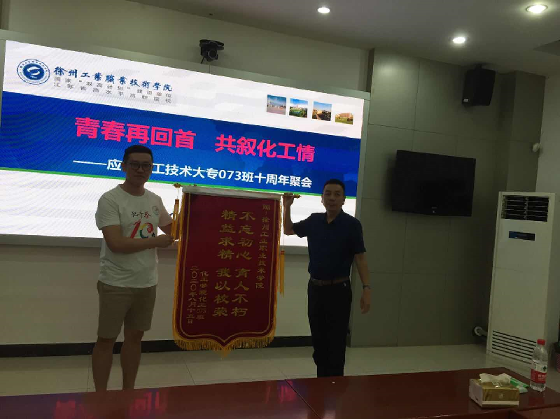 时光荏苒,流水十年。8月15日,化工学院应用化工技术专业2007级3班同学返校举办了毕业10周年聚会。我校副院长鲍桂楠出席活动,化学工程学院党总支吴书记红、产教融合办副主任苏成勇,夏先伟老师及化工073班班主任王存英老师一同参加了本次活动。