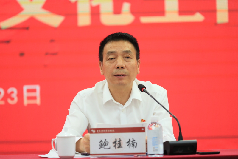 党委副书记、校长鲍桂楠作总结讲话。他强调,宣传思想文化工作事关党的前途命运,事关国家长治久安,事关民族凝聚力和向心力,是一项极端重要的工作。要坚持以习近平新时代中国特色社会主义思想为指导,全面贯彻落实党的二十大和二十届二中全会精神,深入学习贯彻习近平文化思想,认真落实国、省、市宣传思想文化工作会议要求,围绕中心、服务大局,全力推动学校宣传思想文化工作开新局、展新貌,为加快建设高水平高职院校提供坚强思想保证、强大精神力量、有利文化条件,为实现学校高质量发展凝心聚气、蓄能赋力。并从坚持党的领导不动摇、坚持见行见效不虚化、坚持改革创新不僵化、坚持安全稳定不松懈四个方面提出了具体要求。