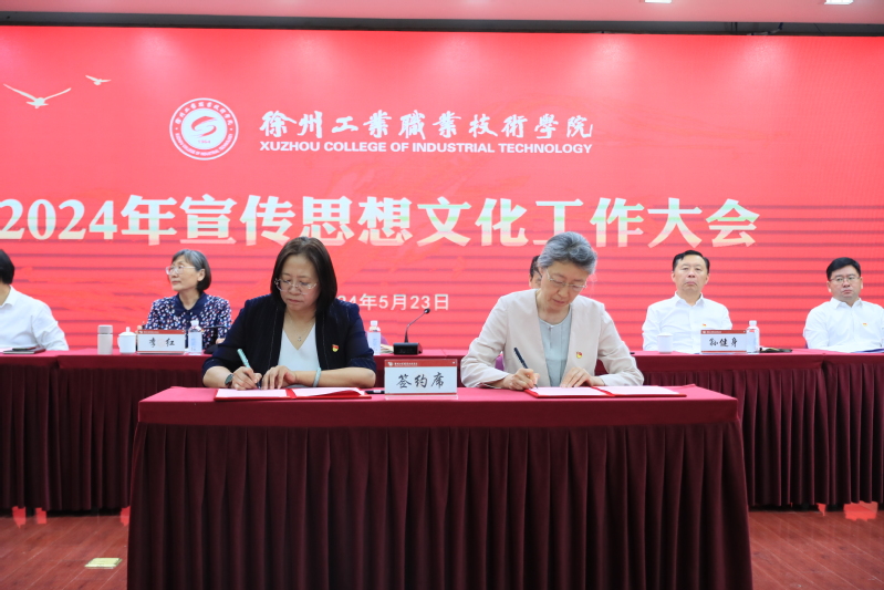 党委书记刘莹与党委副书记李红签订《意识形态责任书》,刘莹、李红分别与二级学院党总支、职能部门代表签订《意识形态责任书》。