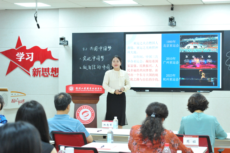 随后在教学展示环节,九龙湖小学李昕烨老师、崇信学校康倩玉老师、徐州市第二中学秦淑艳老师、我校马克思主义学院谢玉龙副教授、江苏师范大学管秀雪教授围绕“爱国主义”教学章节分别进行了小学、初中、高中、大学、研究生学段的思政课教学展示。