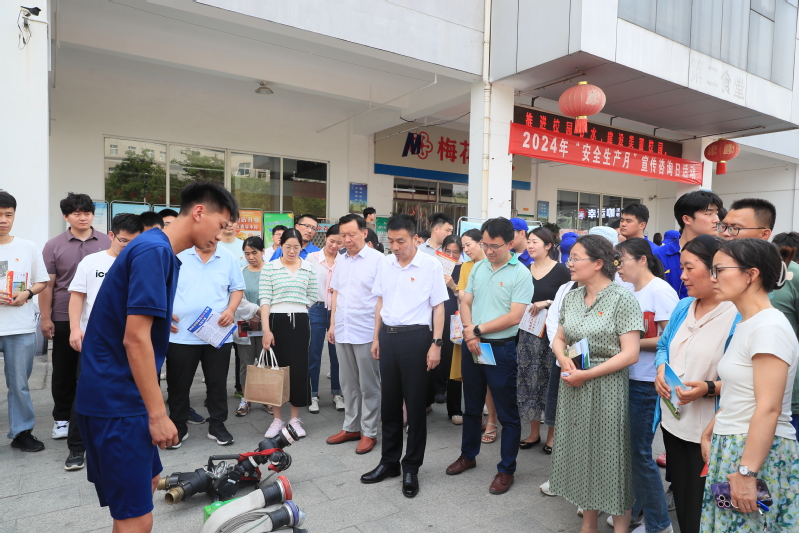 为扎实推进全国第23个“安全生产月”的相关工作,切实加强学校安全宣传教育,牢固树立“生命至上、安全第一”的理念,6月14日下午,我校围绕“人人讲安全、个个会应急——畅通生命通道”主题在第二餐厅东广场组织开展“6.16” 安全宣传咨询日活动。本次活动由保卫处联合鼓楼区消防救援大队、鼓楼交警中队、九里派出所、校卫生所共同开展,校长鲍桂楠、副校长孙健身及各相关部门等师生代表约五百余人参加。