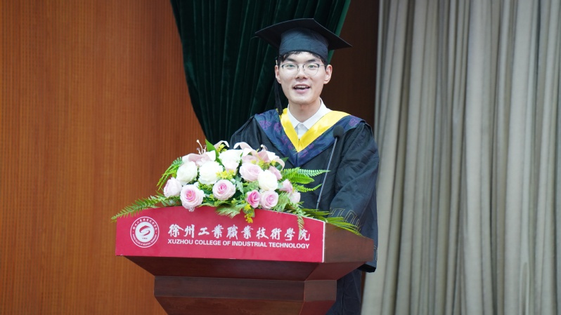 毕业生代表陈磊同学,教师代表周正龙老师,学生代表王雨琪同学,先后进行发言。