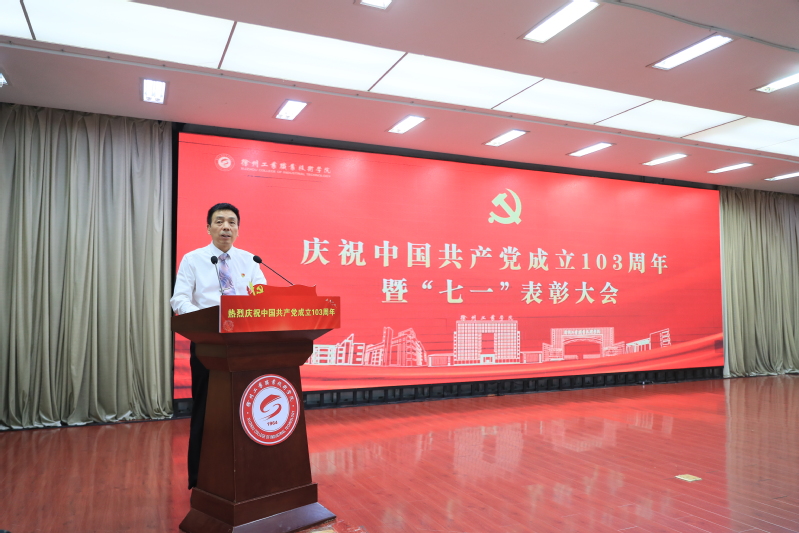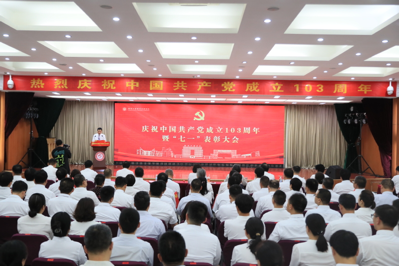 为庆祝中国共产党成立103周年,激励全校基层党组织和广大党员干事创业热情,6月28日下午,学校党委在图书馆报告厅召开庆祝中国共产党成立103周年暨“七一”表彰大会,全体校领导、党委委员、党总支(直属党支部)书记、全体中层干部,各党总支(直属党支部)委员、各党支部书记、新发展党员、民主党派主要负责人、无党派代表参加会议。党委副书记、校长鲍桂楠主持会议。