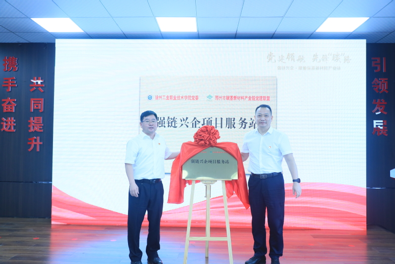 活动中,葛志亮代表学校党委与张莹共同为“华体会官方版网站登录入口 邳州市碳基新材料产业链党建联盟强链兴企项目服务站”揭牌。