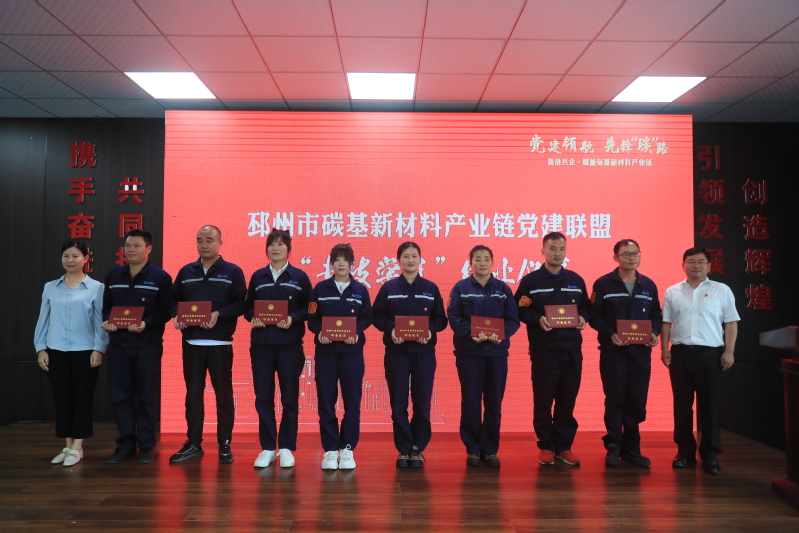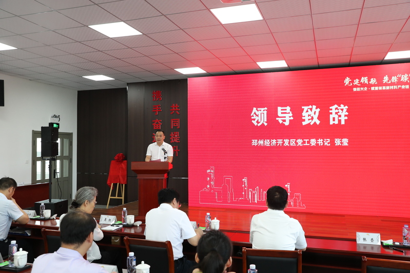 为深入贯彻落实《省委教育工委关于开展“百所高校对接千个产业链党建联盟”行动的通知》精神,聚焦学校教育资源,创新资源、人才资源,带动产业链企业共同进步,9月20日上午,学校党委委员、纪委书记葛志亮带领组织部、化学工程学院等部门党员干部赴邳州市开展“强链兴企·赋能碳基新材料产业链”党建共建活动。邳州经济开发区党工委书记张莹,邳州市碳基新材料产业链党建联盟负责人、龙兴泰能源科技有限公司、沂州科技有限公司、海天石化有限公司等产业链企业代表以及学校为企业培养员工代表参加了共建活动。