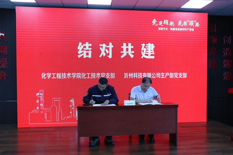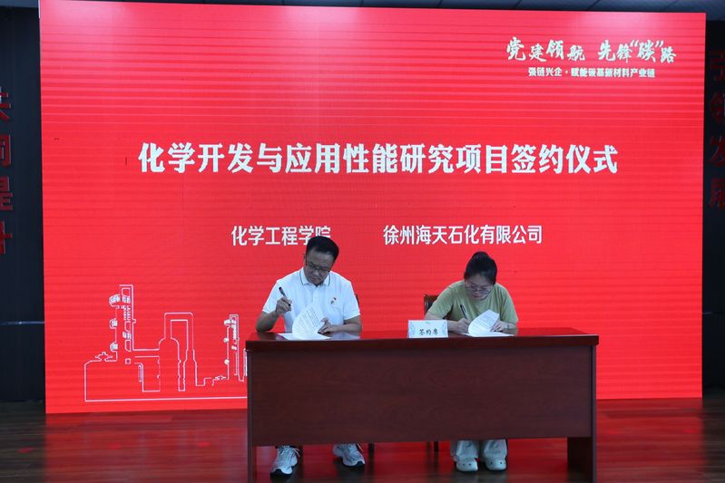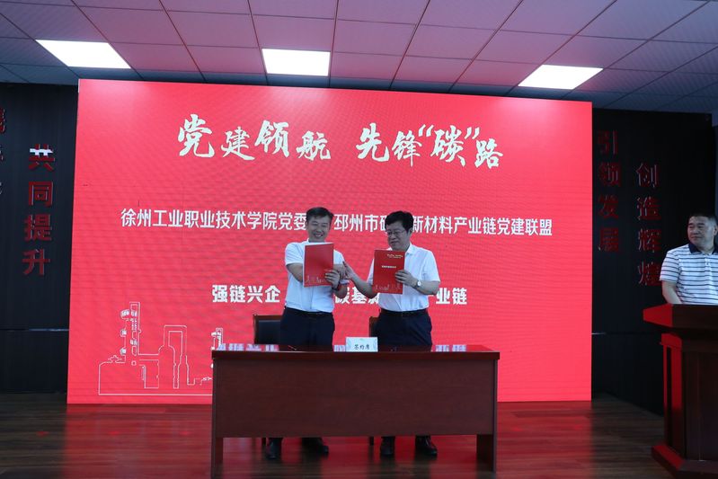 活动现场,学校党委委员、党委组织部部长乔向东与产业链接党建联盟负责人签订《强链兴企共建协议》,化学工程学院党总支书记吴红、院长张雷分别与龙兴泰能源科技有限公司、沂洲科技有限公司签订党总支、党支部党建共建协议,化学工程学院党员博士教师武雪梅与徐州海天石化有限公司签订了《聚丙烯高端产品的开发利用》项目技术合作协议。校企将共同探索和实践党建工作的新模式、新方法、新途径,重点围绕碳基新材料产业主营业务发展的科技需求,共同进行课题研究,解决产业升级中的技术难题。