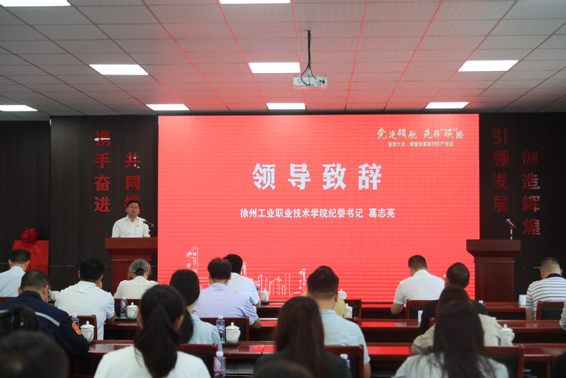 葛志亮在会上致辞,介绍了学校的办学情况、发展历程和党建工作情况,并表示学校将不断探索党建工作与产业链深度融合的新模式,推动党建引领的融合、产教科创的融合及校企合作的融合,实现党建和事业发展的“一融双高”。