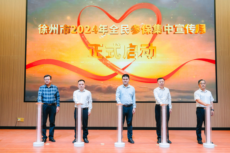 10月12日下午,徐州市2024年全民参保集中宣传月启动仪式在我校西门报告厅隆重举行。徐州市医疗保障局党组成员、副局长张磊,税务局、财政局、各高校医保负责人、我校副校长孙健身出席启动仪式。各二级学院教职工及学生代表100余人参加了本次活动。启动仪式上,市医保中心发出《参保倡议书》,相关领导颁发医保公益宣传员聘书,参保受益群众代表发言,最后参会领导共同按下启动键,宣布徐州市“2024年全民参保集中宣传月”活动正式启动。