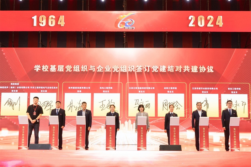 学校基层党组织与产业链上龙头企业和骨干企业签订了党建结对协议,签约仪式上分别与徐州徐轮橡胶股份有限公司党委、江苏京东信息有限公司党委、江苏开沃汽车有限公司党委、江苏江昕轮胎科技有限公司党总支、徐州重型机械有限公司党委、海信集团海信容声(扬州)冰箱有限公司党支部、徐工汉云技术股份有限公司党支部、中国邮政集团有限公司徐州分公司党总支、徐州中煤百甲重钢科技有限公司党支部、江苏华源节水股份有限公司党总支、徐州卫星石化有限公司党支部等11家企业党组织进行了签约。