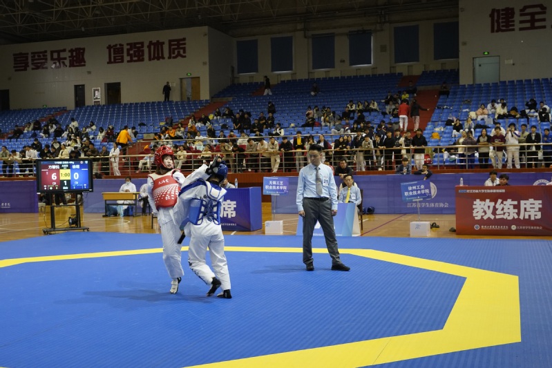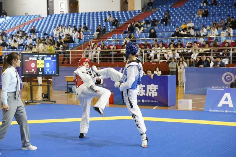 本次比赛由江苏省学生体育协会主办,我校与江苏省学生体育协会高校工作委员会共同承办,江苏省学生体协高校工作委员会跆拳道分会协办,共同为全省大学生跆拳道爱好者搭建了一个展示技艺、交流经验的平台。为期四天的比赛涵盖了男子和女子的多个级别项目,包括竞技、品势,全面展示了大学生跆拳道运动员的精湛技艺和团队协作精神。来自全省68个代表队的782名运动员在赛场上奋力拼搏,为观众带来了精彩纷呈的视觉盛宴。