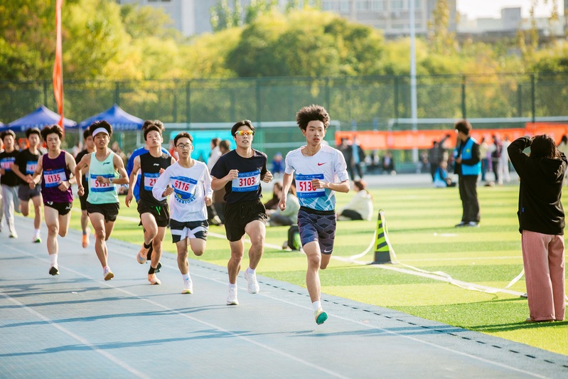 长跑健儿们,凭借着坚韧不拔的钢铁意志,一圈接一圈地在跑道上坚毅前行,不断挑战着自我的体能极限。他们的脸颊上挂满了晶莹的汗珠,如同颗颗珍珠在阳光下熠熠生辉,眼神中,闪烁着不屈不挠的光芒,那是一种对胜利的坚定信念,对自我的深刻超越。他们每一步的落下,都是对极限的勇敢宣战;每一次的呼吸,都是对体育精神最真挚地颂歌。