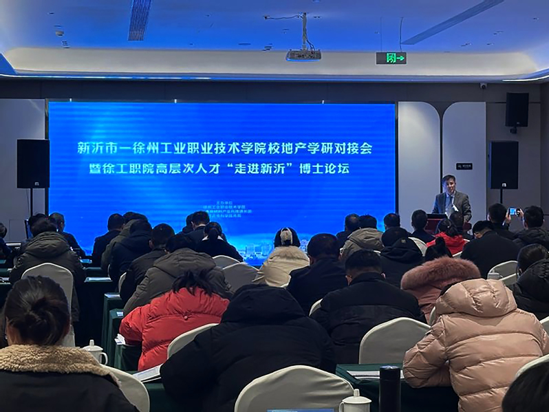 12月18日下午,我校与新沂市政府在新沂市戴斯大酒店举办校地产学研对接会暨高层次人才“走进新沂”博士论坛。本次活动以“政行企校”联动,服务新质生产力发展为核心主题,致力于搭建校地、校企沟通桥梁,促进产学研协同创新,为地方经济发展提供强劲动力。新沂市相关领导、徐州市新材料产业科技镇长团、新沂市相关行业企业代表以及学校领导、相关部门负责人、相关专业博士等齐聚一堂,共襄盛举。活动由新沂学院副院长王涛主持。