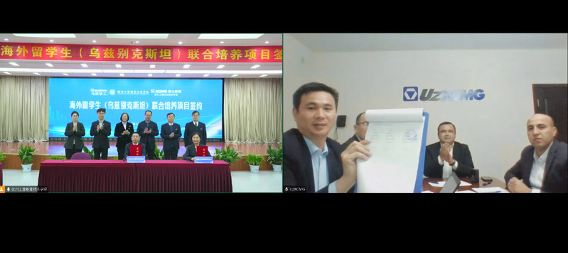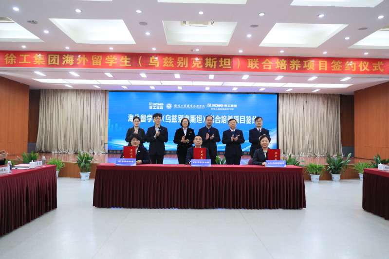 鲍桂楠分别与徐工道路机械事业部、徐州徐工传动科技有限公司、乌中合资乌兹徐工有限责任公司、徐州工程机械技师学院等单位代表签署海外留学生(乌兹别克斯坦)联合培养协议。协议内容涵盖了培养模式、培养对象、专业和学制等多个方面,双方就共同培养海外留学生达成了广泛共识。