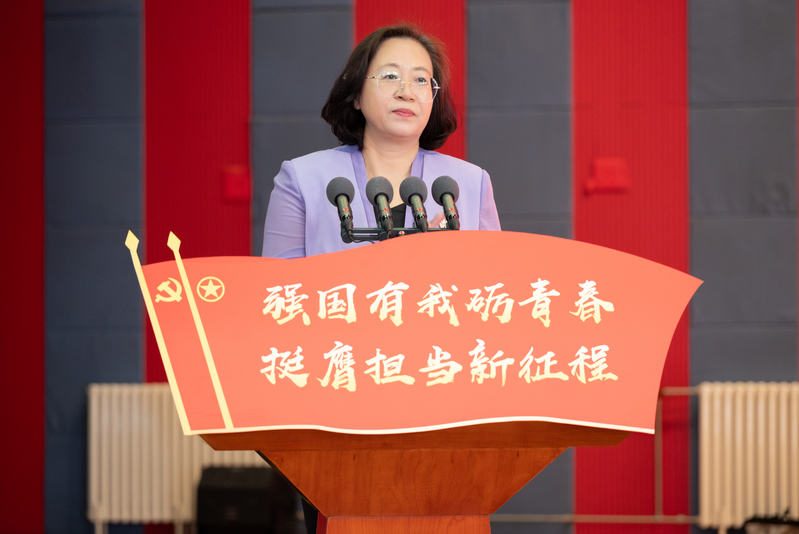 刘莹提出四点希望寄语全体团员青年。一是希望广大青年以梦为舟,破浪前行。以习近平新时代中国特色社会主义思想武装自己,筑牢信仰之基,将“技能报国”的理想融入学习,让青春在实践中奋勇前行。二是希望广大青年以责为帆,奉献担当。在青春征程中,勇担时代使命,拓展奉献青春的维度,积极投身各种社会实践,在祖国和人民需要的地方建功立业。三是希望广大青年以苦为径,砥砺奋进。在学业和技能方面不断突破自我,敢于吃苦,甘于吃苦,开辟青春奋进之路,实现人生价值。四是希望广大青年要以新为翼,续写华章。站在新起点上,希望同学们传承学校优良传统,不断涵养文化自信,传承民族精神,肩负时代使命,书写强国新篇。